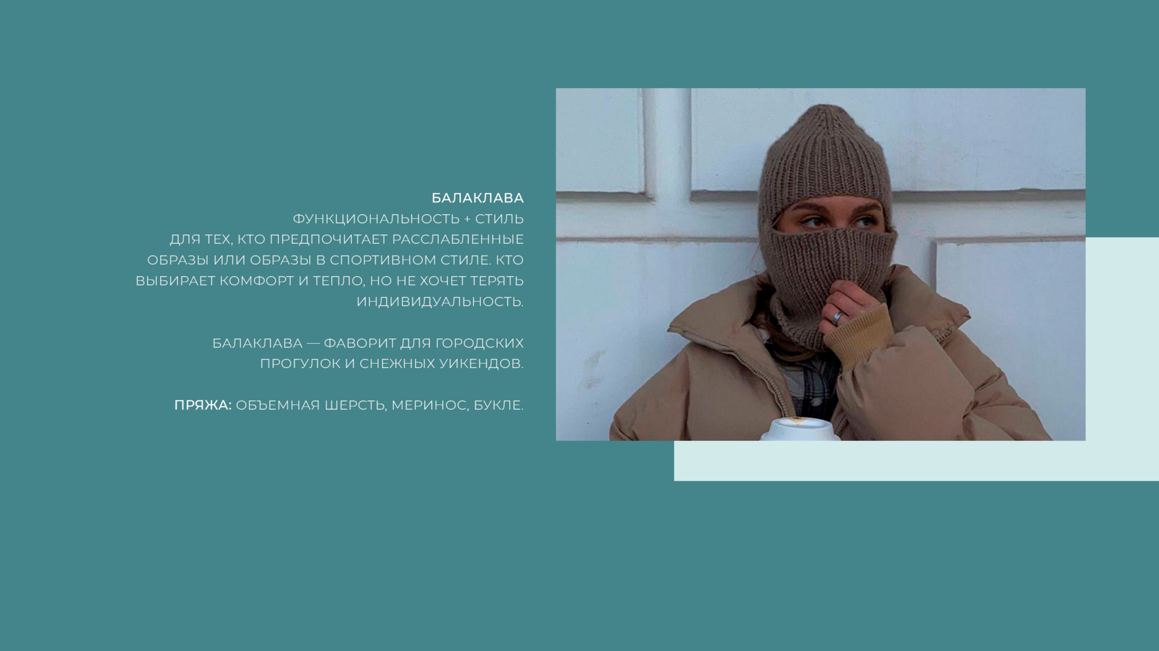 Балаклава остаётся одним из главных трендов сезона 2025/2026 — она сочетает в себе практичность, комфорт и стильную дерзость. Вязаные модели с мягкими линиями, отверстиями для лица и фантазийной текстурой стали неотъемлемой частью модного зимнего гардероба.